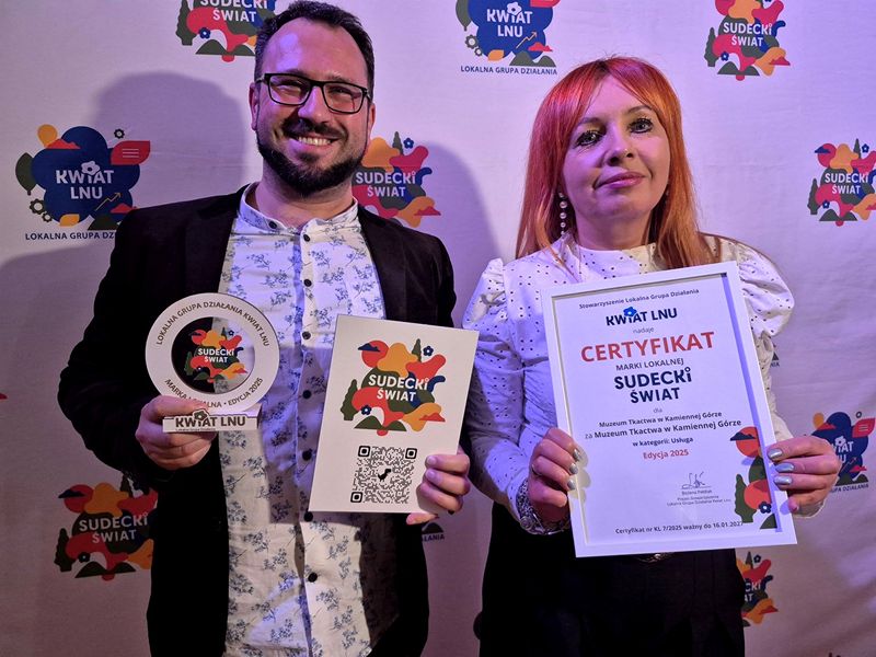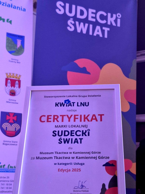 Nasze muzeum otrzymało po raz pierwszy certyfikat marki lokalnej „Sudecki Świat". Uroczystość III edycji konkursu miała miejsce 16 stycznia w Krzeszowie. Z rąk kapituły wyróżnienie przyjęła dyrektor Małgorzata Ogonowska.