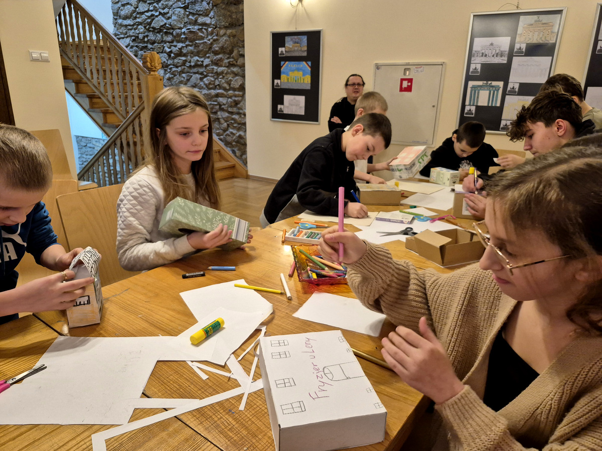 Na koniec nasi goście z Lubawki obejrzeli wystawę „Ikona. Brama Brandenburska oczami młodych miłośników historii”. To konkursowe prace plastyczne uczniów Szkoły Podstawowej nr 1 w Kamiennej Górze. Rysunki i modele ukazują ikoniczną budowlę z Berlina – dzieło Carla Gottharda Langhansa, klasycystycznego architekta z Kamiennej Góry.