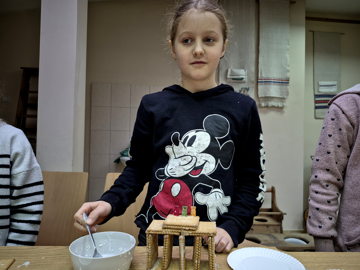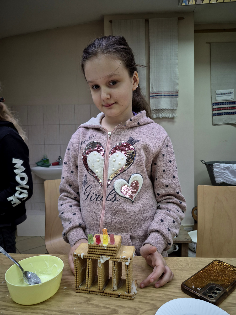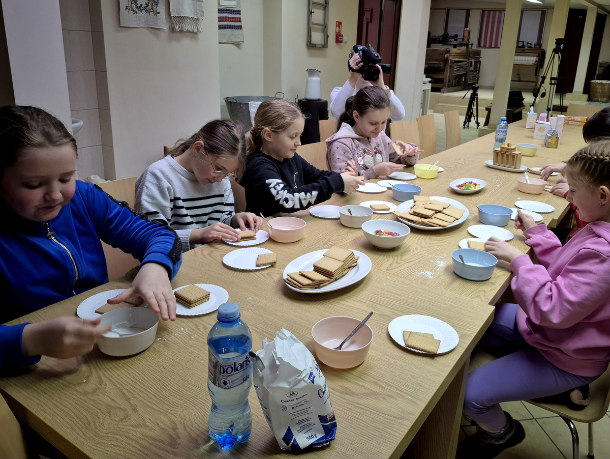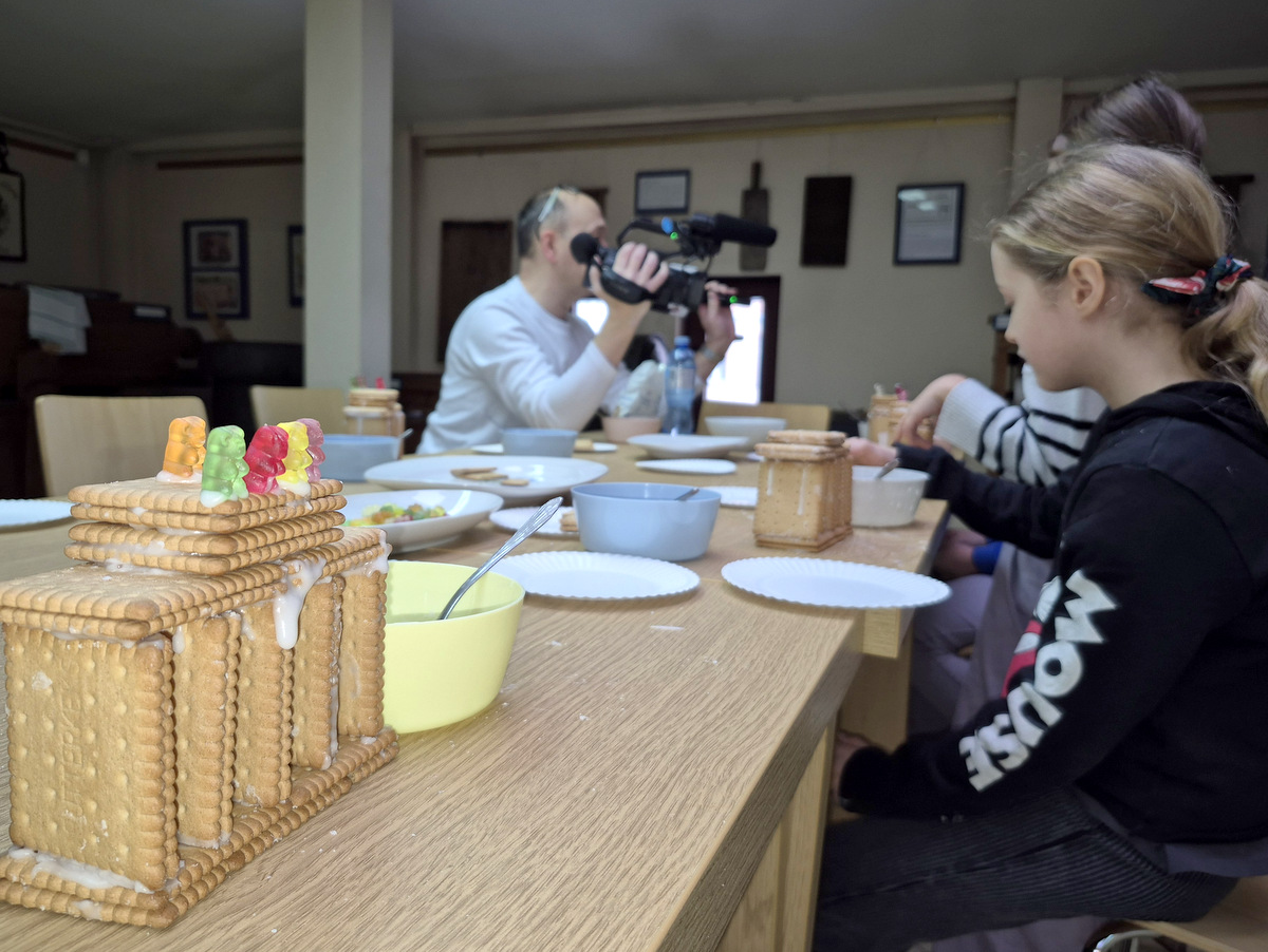 Ostatnim, finałowym zadaniem było budowanie słodkiej makiety! Jako wzorzec wybrana została wspominana Brama Brandenburska w Berlinie, dzieło Carla Gottharda Langhansa. Nasi mali goście zbudowali własną bramę, wykorzystując jako materiały… herbatniki (budulec), lukier (spoiwo) oraz żelki (dekoracje). Deserowy model słynnego zabytku był sporym wyzwaniem, z którym nasi goście poradzili sobie doskonale!