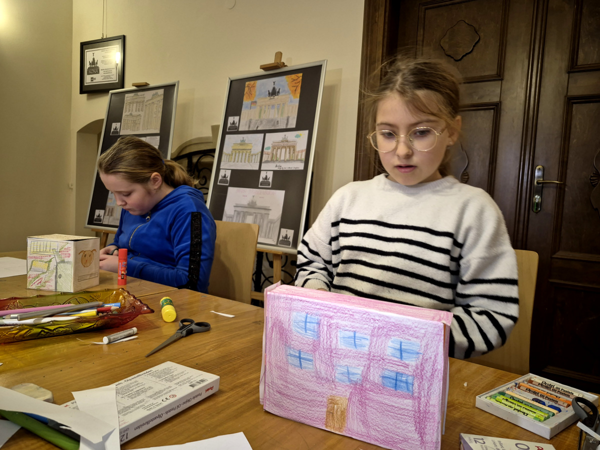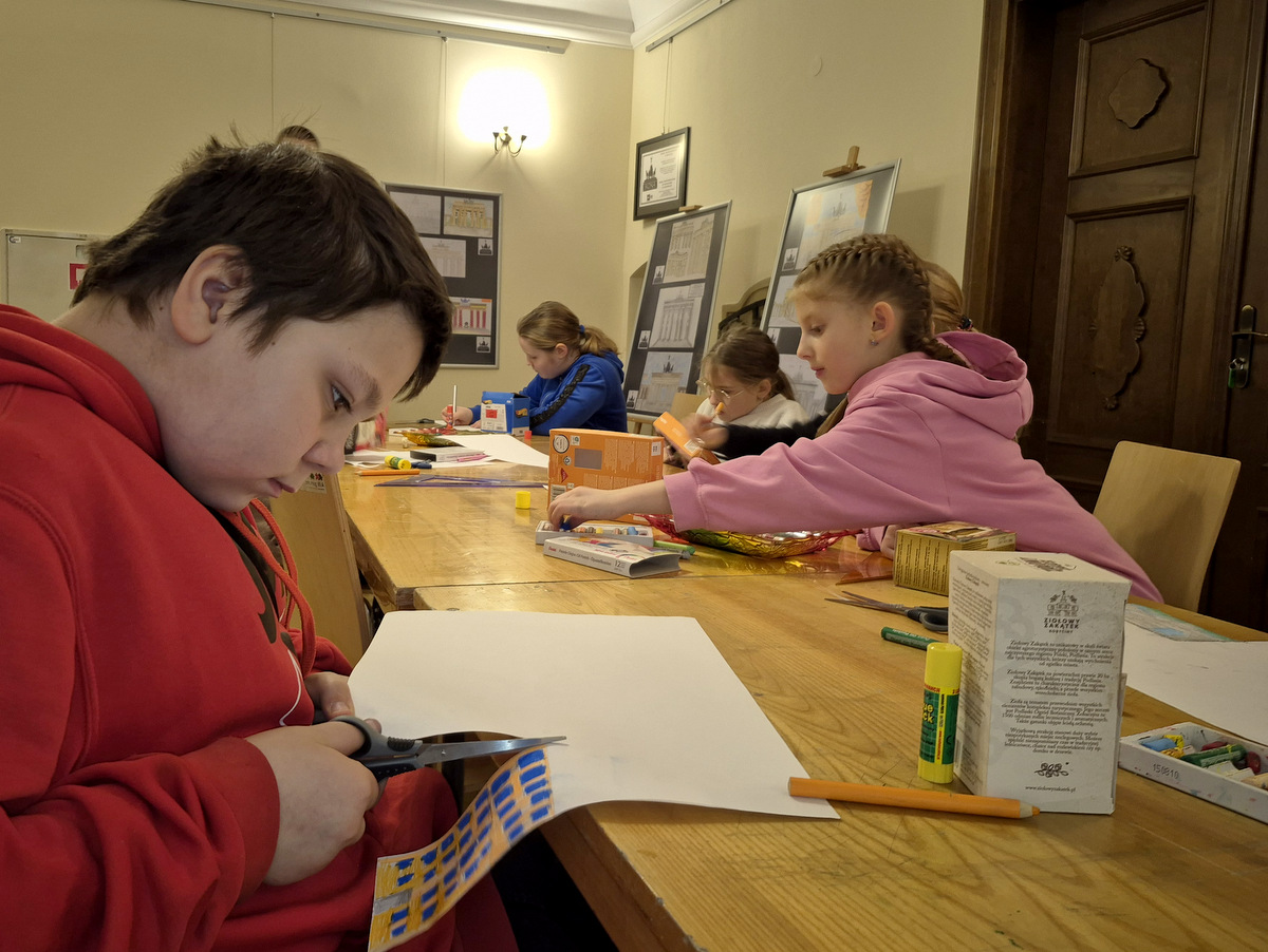 Kreatywne zajęcia nawiązały do trwającej w I tygodniu ferii wystawy „Ikona. Brama Brandenburska oczami młodych miłośników historii”. To konkursowe prace plastyczne uczniów Szkoły Podstawowej nr 1 w Kamiennej Górze.