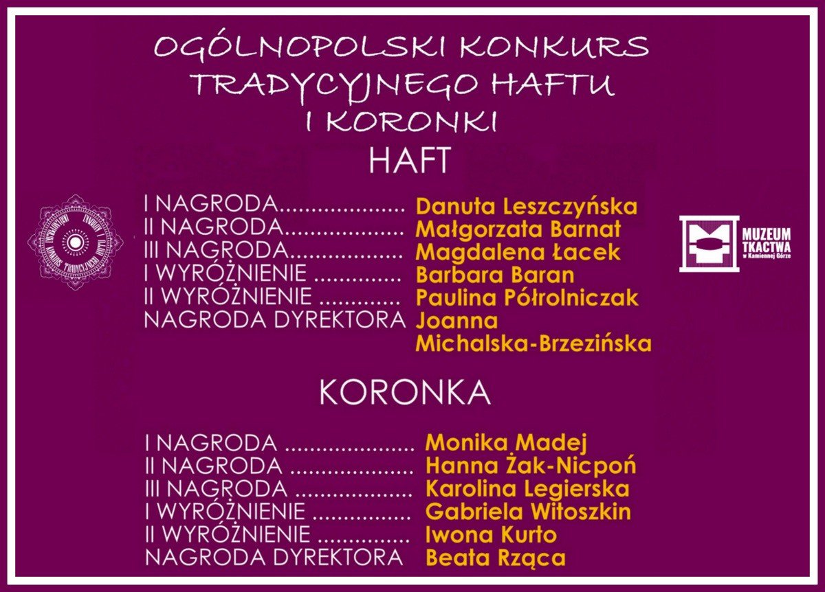 Wyniki Ogólnopolskiego Konkursu Tradycyjnego Haftu i Koronki