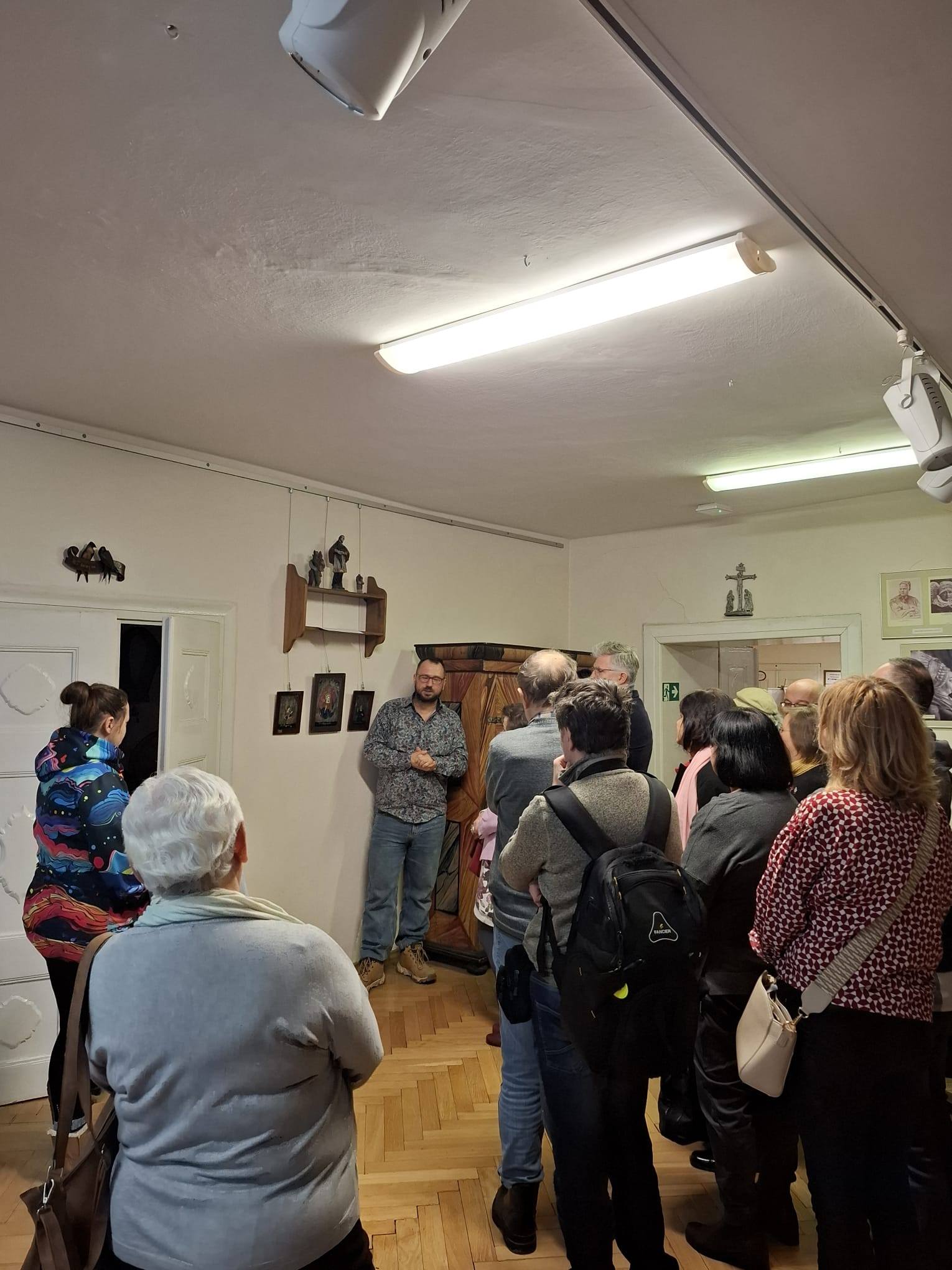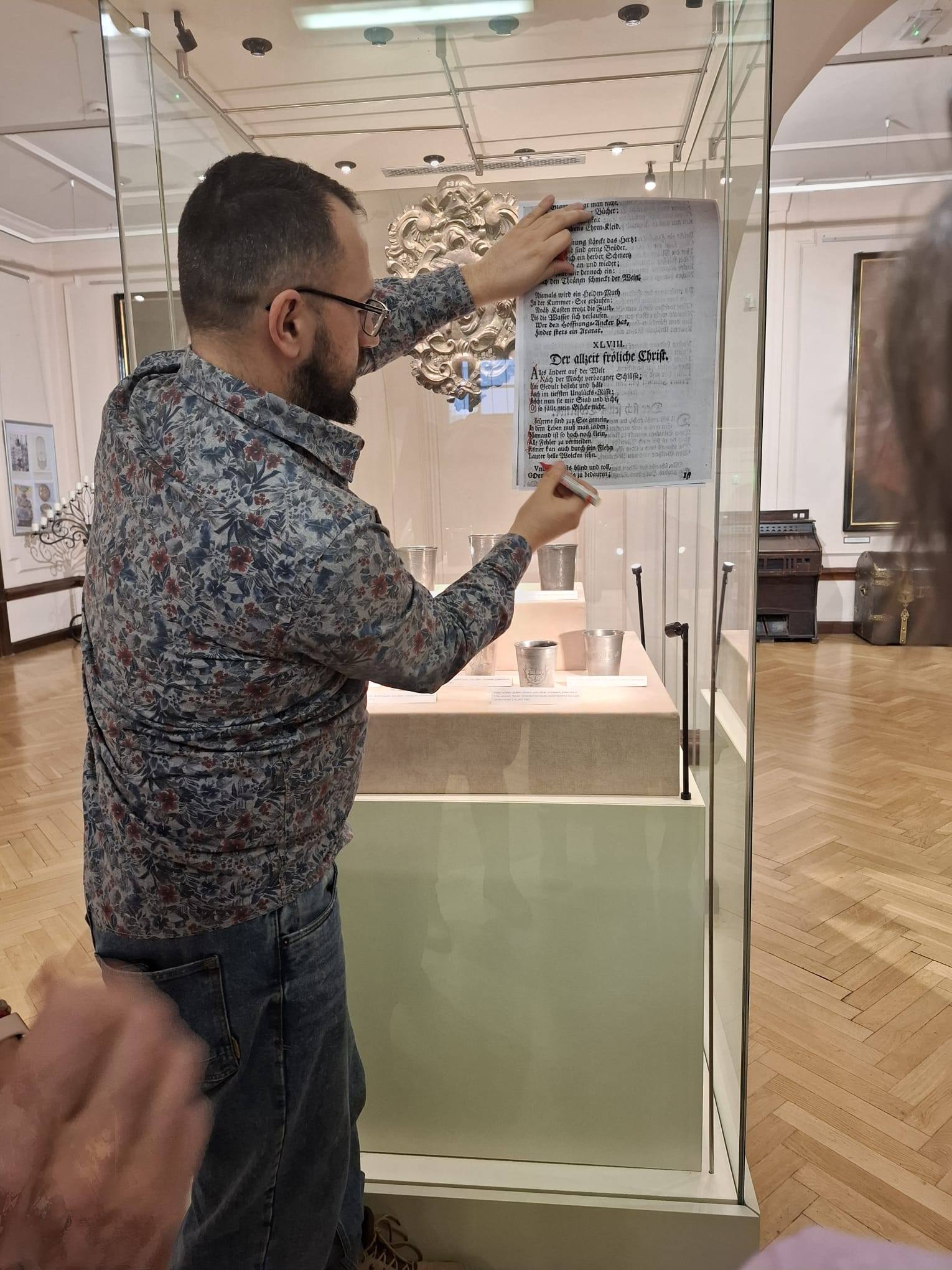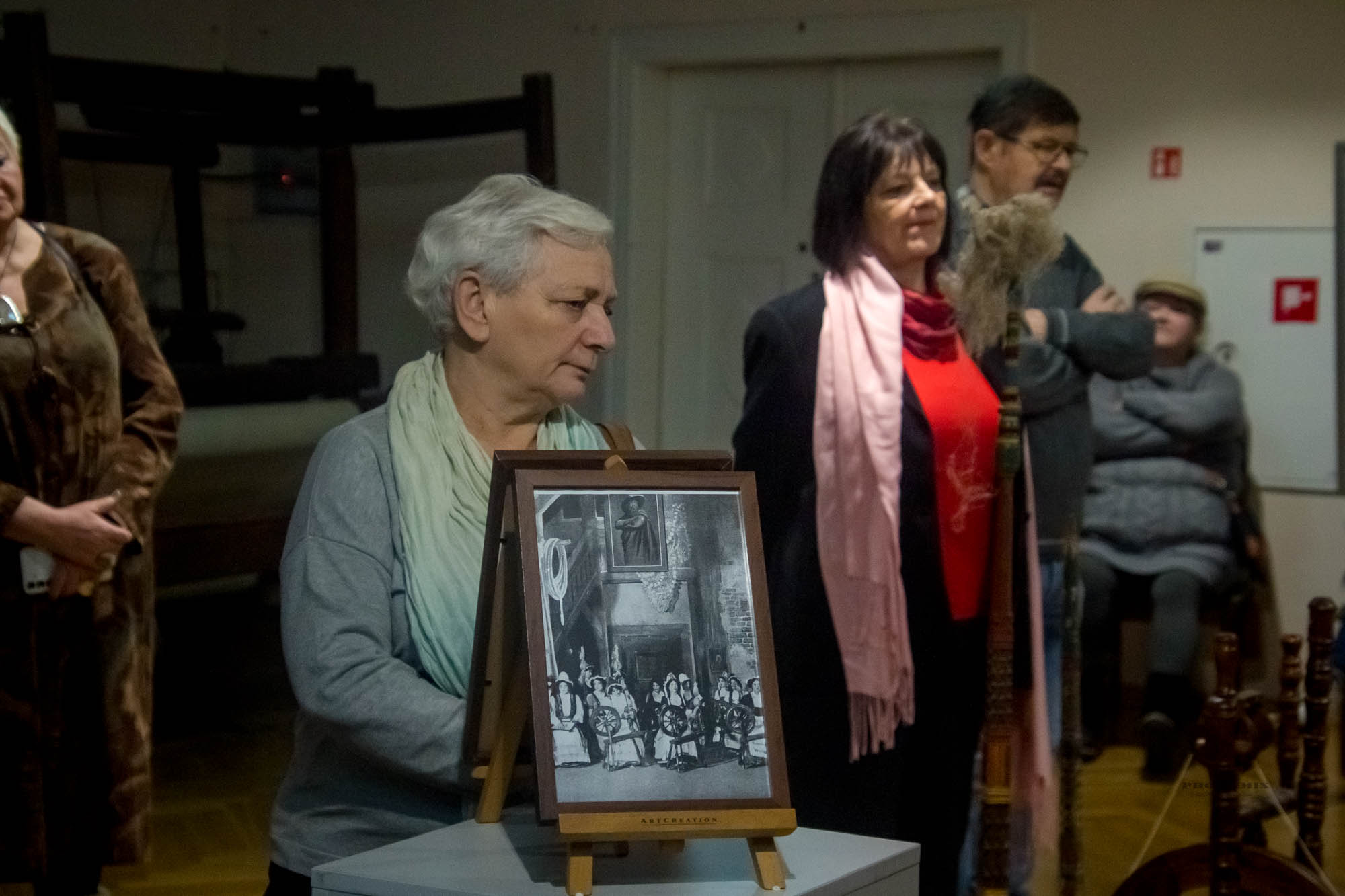 Z oferty skorzystali nasi mieszkańcy i turyści 14 lutego oraz słuchacze Karkonoskiego Uniwersytetu Trzeciego Wieku 16 lutego. Zwiedzający poznali nasze eksponaty związane z wzniosłym uczuciem, rozmaite historie miłosne związane z dziejami Kamiennej Góry, a także romantyczne konteksty kultury dotyczące muzealiów w naszych zbiorach (w tym dotyczące przęślic i kołowrotków). Wiele „zwykłych” przedmiotów nabrało rumieńców! Podczas muzealnego miłosnego spaceru podziwialiśmy trzy pary: cesarską, książęcą, kupiecką, a także „rozkodowaliśmy” kamiennogórski miłosny akrostych wybitnego poety Johanna Christiana Günthera sprzed 300 lat. Oglądaliśmy zabytkowe „walentynki” - miłosne karty pamiątkowe z XIX wieku, a także słuchaliśmy miłosnych pieśni związanych z tkactwem (w tym pieśni do słów Johanna Wolfganga Goethego, który odwiedził Kamienną Górę w 1790 roku). Uczestnicy poznali niezwykłą historię antycznego miłosnego „role play” o charakterze crossdressing z Herkulesem i przędzeniem w tle. Podziwialiśmy również cenny zabytkowy śląski obój miłosny z czasów Jana Sebastiana Bacha (a także jego wyjątkową arię z tym instrumentem, będącą pionierską kompozycją o tematyce LGBT). Zaskoczeniem była święta z obrazka na szkle, patronka chorych na „choroby miłosne”.